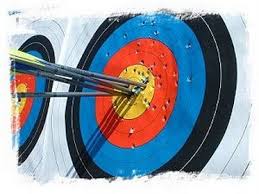 As you can see this image has holes from where the arrows have missed the bullseye. My aim with my targets is to be in the red/yellow areas . Blue is worst case scenario